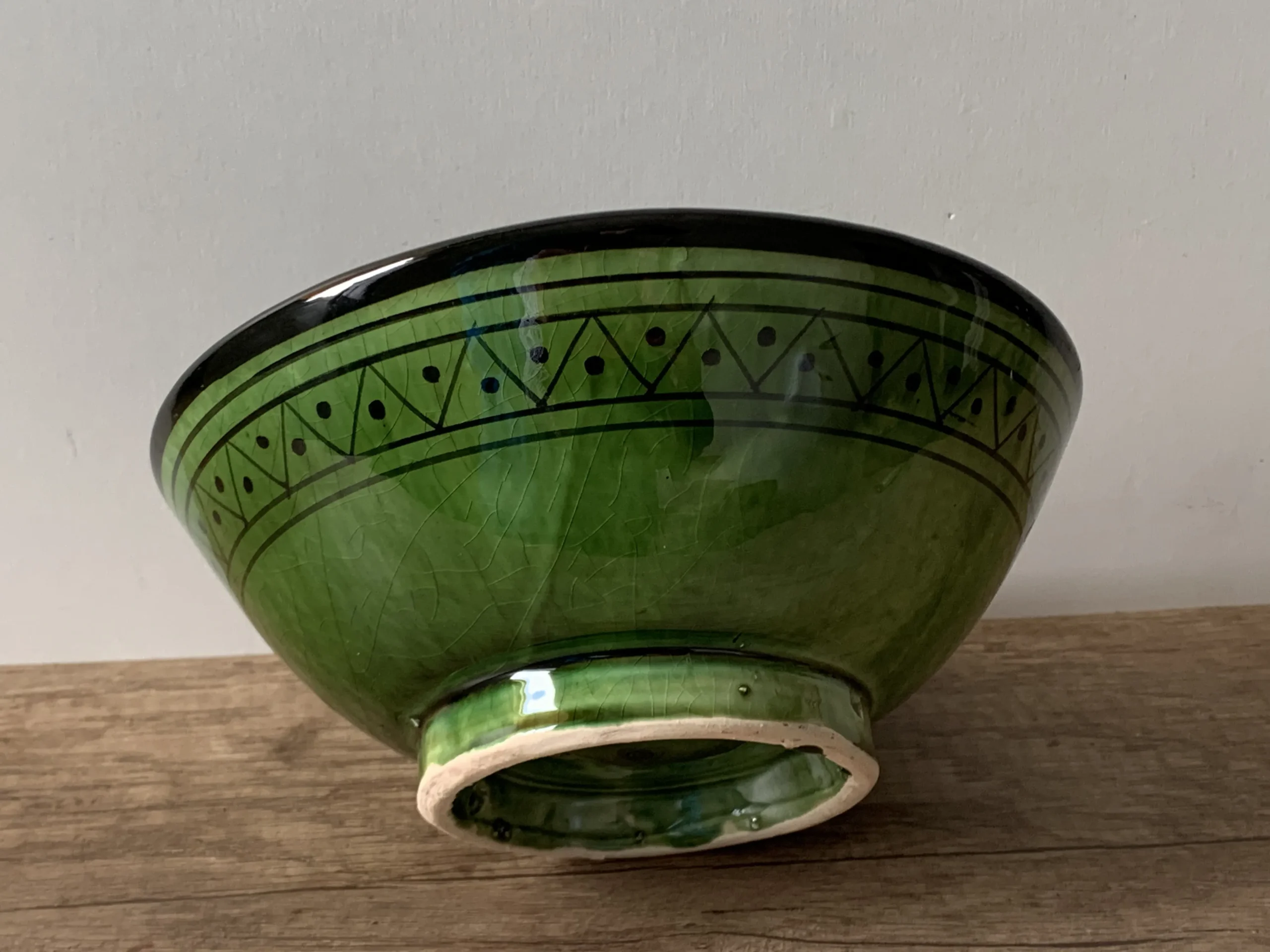 Authentic Safi pottery green ceramic salad bowl hand-painted Moroccan designAuthentic Handmade Moroccan Green Ceramic Bowl – Traditional Safi Pottery – Hand-Painted Moroccan Tableware – Decorative & Salad Bowl