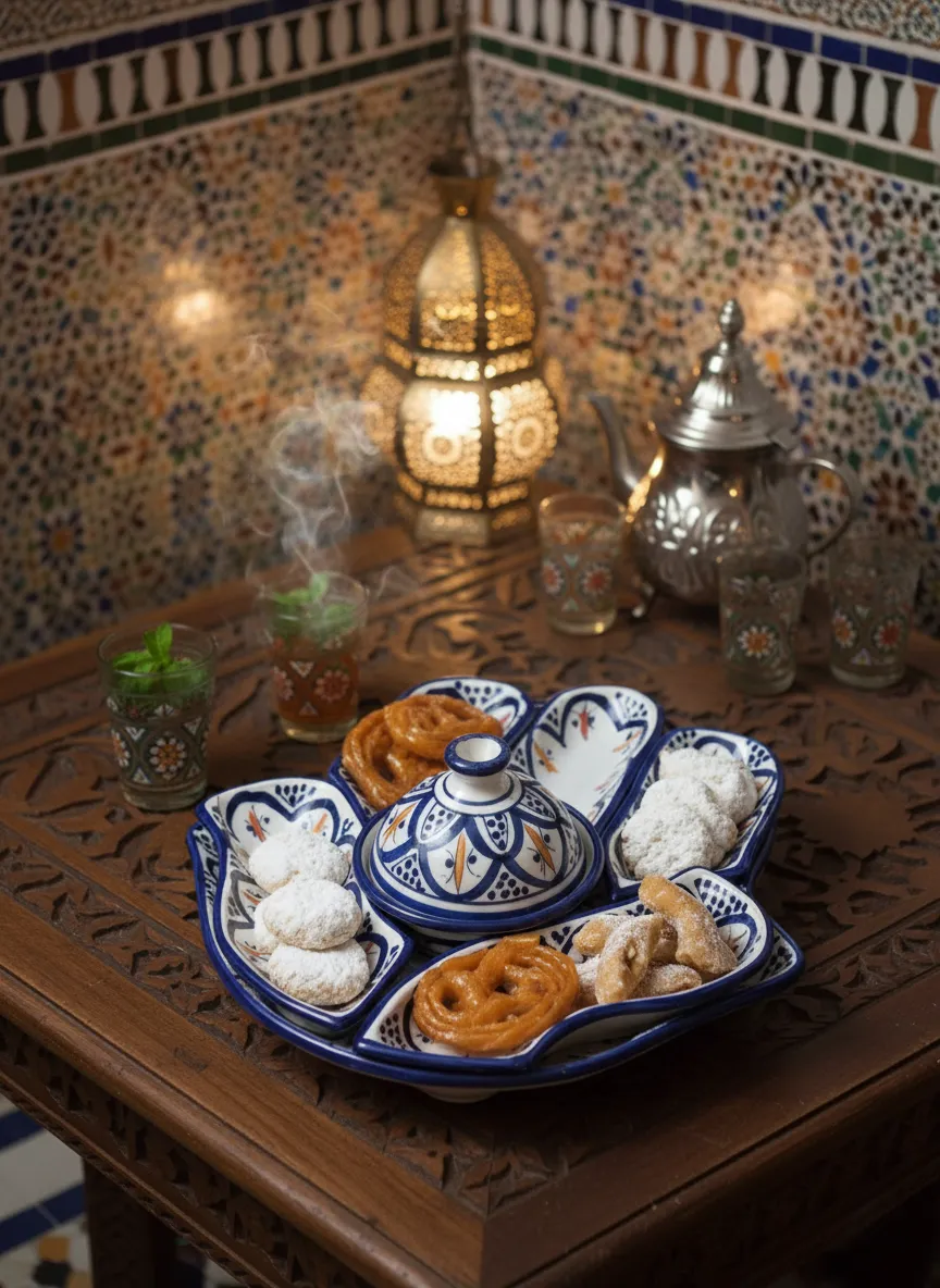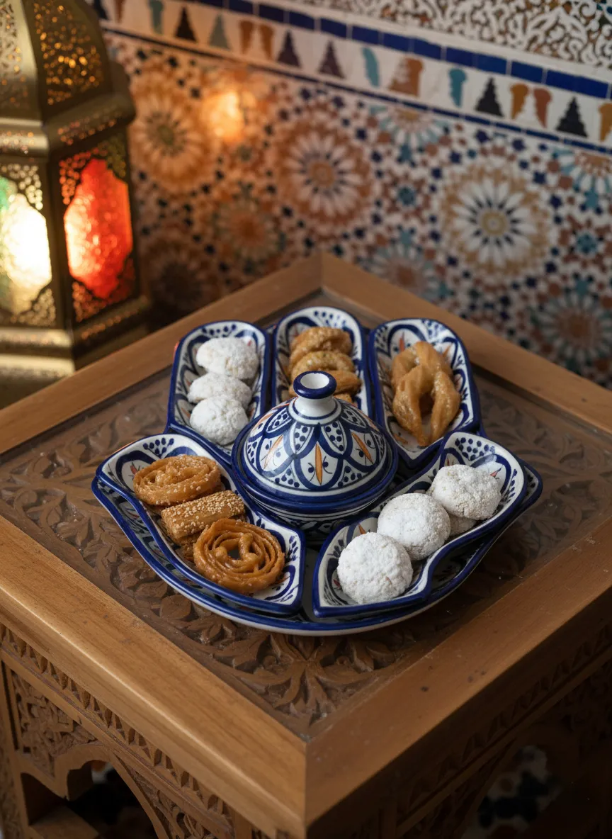 Perfect for serving sweets, dates, nuts, dry fruits, or appetizers, this set adds an authentic Moroccan touch to your gatherings, tea time, or festive table. It also works beautifully as a statement décor piece in your living room or dining area.