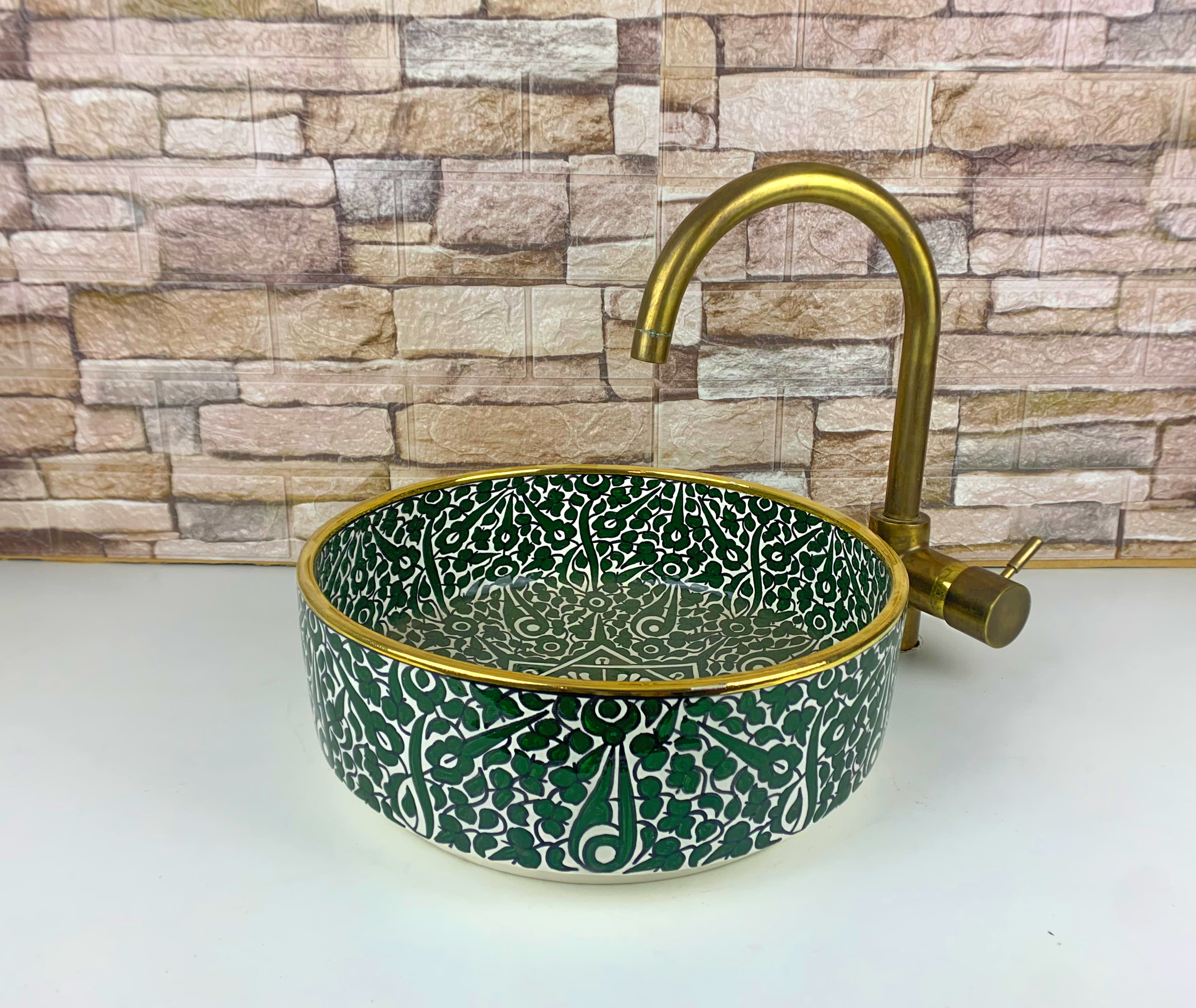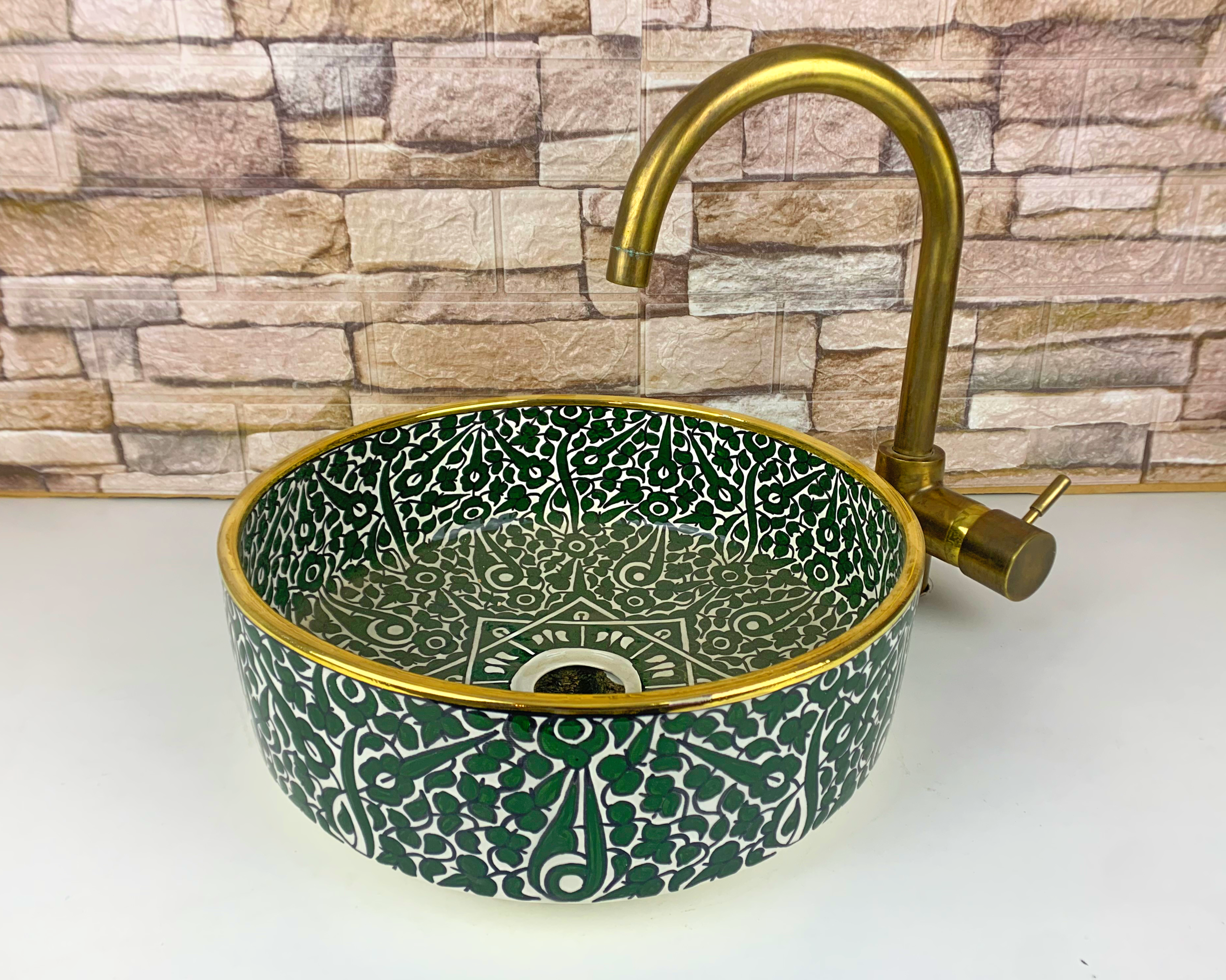 This Moroccan handmade ceramic sink is an authentic artisan vessel basin, meticulously hand-painted by skilled craftsmen in Morocco. Designed for bathroom or kitchen countertops, it combines traditional Moroccan ceramic artistry with refined, contemporary elegance.